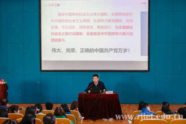 陈德泉以“壮阔征程擘画宏伟蓝图 以中国式现代化推进中华民族伟大复兴”为主题,从二十大会议基本情况、会议主要精神、以中国式现代化推进中华民族伟大复兴、推动职业教育高质量发展四个层面,阐述了党的二十大报告的核心要义及党的二十大精神的精髓,号召全校师生立足当下、开创未来。